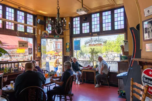 Bruine cafés zijn het hart van de Nederlandse kroegcultuur. Warme houten interieurs, glas-in-loodramen, oude foto’s aan de muur en een bar waar verhalen worden gedeeld.