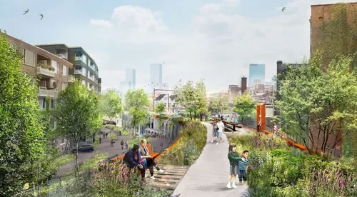 So what are these projects about? Hofplein, Schouwburgplein and Alexanderplein will become beautiful green squares with less traffic. The Westblaak will become Blaakpark and Hofbogenpark will provide a beautiful, elevated walk amongst the treetops. There will also be three new parks in South Rotterdam: the Rijnhaven Park, the Nelson MandelaPark at Maashaven and the Feyenoord Tide Park. More information on these projects is available on this Dutch website. On this page we give you some of the highlights.