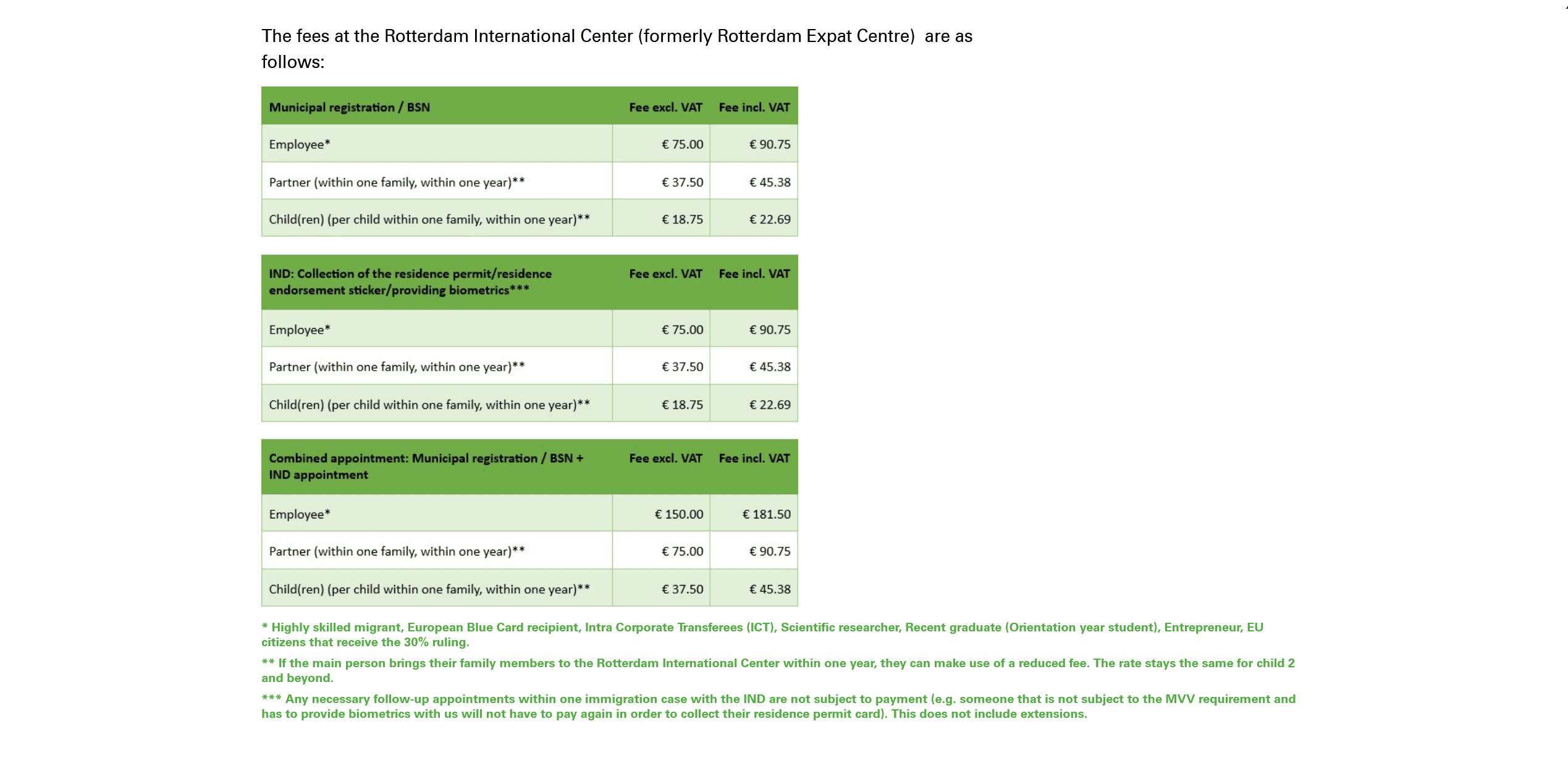 Here you can download the fees at the Rotterdam International Center (formerly Rotterdam Expat Centre).