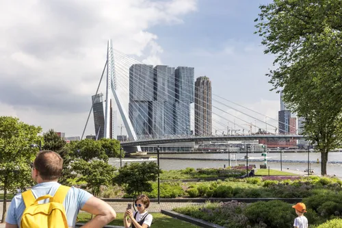 Nog steeds klinken hier de heipalen volop en in het afgelopen decennium kreeg Rotterdam er een paar ‘nieuwe iconen’ bij, zoals Rotterdam Centraal Station, de Markthal, De Rotterdam, Het Timmerhuis en het Depot Boijmans Van Beuningen. Rotterdam is nooit af. Ook de bouwkranen zijn hier integraal onderdeel van de skyline. Van het Nieuwe Bouwen en wederopbouw naar hoogbouw, bevindt de stad zich nu ook in de fase van innovatieve en klimaatadaptieve architectuur. Want nu steden wereldwijd worstelen met de gevolgen van klimaatverandering, is stilzitten en niets doen geen optie. En laten de Rotterdammers daar nu sowieso niet heel goed in zijn… Initiëren, leren, anticiperen en innoveren lijkt de mensen hier in het bloed te zitten. Hoe zie je dat nu terug? Een plek waar de groene ontwikkeling van Rotterdam al volop zichtbaar is, is de Rijnhaven: dé proeftuin voor drijvend bouwen, met het spectaculaire Floating Office (door Powerhouse Company) als trekpleister voor architectuurliefhebbers. Het gebouw is geheel van hout, zelfvoorzienend, duurzaam én drijvend! Ondertussen verrijst om hen heen een drijvend stadspark, met grasvelden, bomen, planten en een heus stadsstrand. Een hete zomerdag? Hier duik je zo het Maaswater in! Ook drijvende woningen (Havenlofts) en een drijvende boerderij (Floating Farm) werden in Rotterdam al gerealiseerd. Water is hier geen belemmering, maar wordt benut doordat Rotterdammers het simpelweg beschouwen als een ander soort ondergrond om op te bouwen.