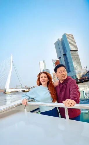 Verken Rotterdam van het water. Vanaf rondvaartboot Spido geniet je met een hapje en drankje van het uitzicht op de skyline.